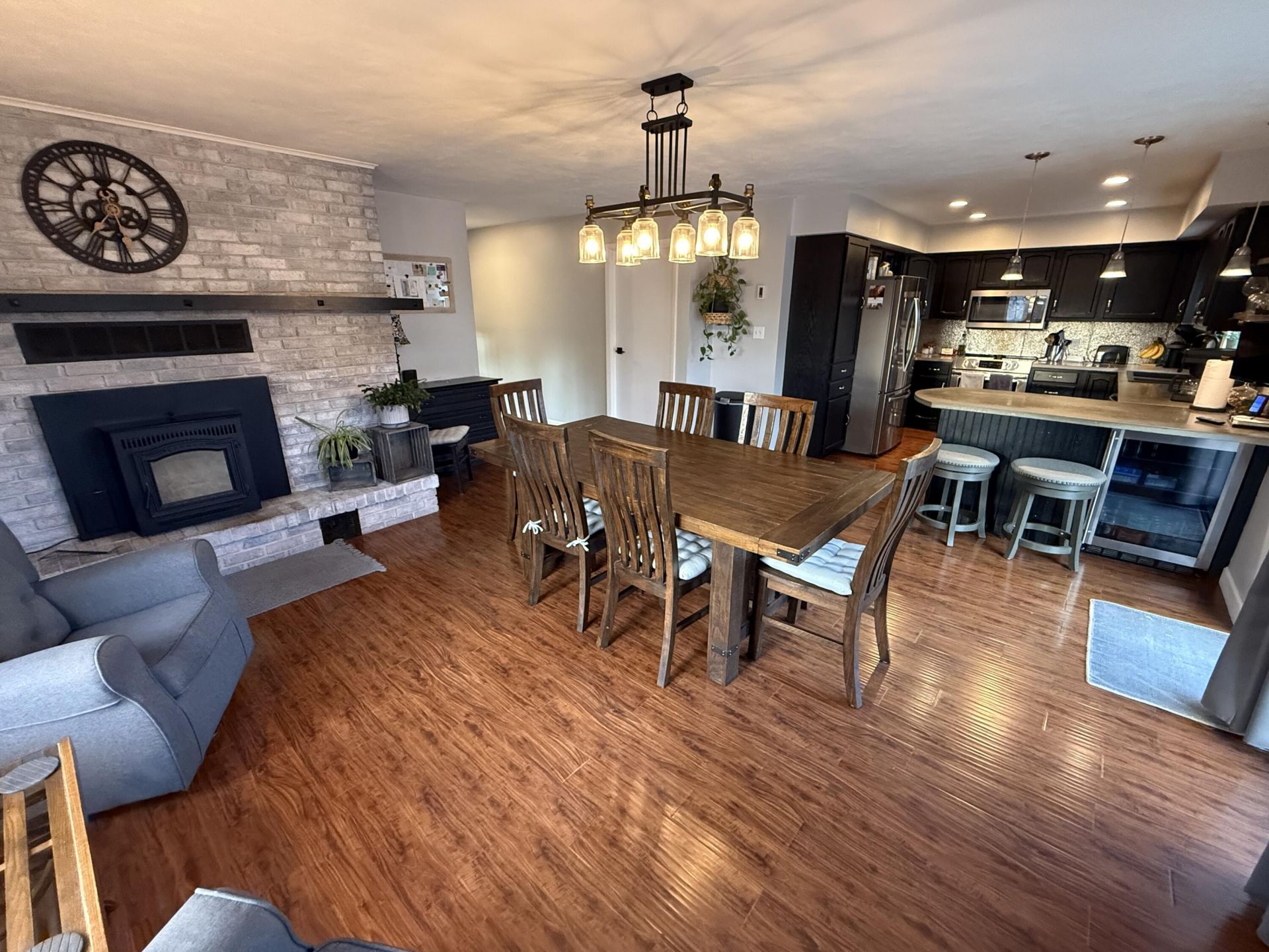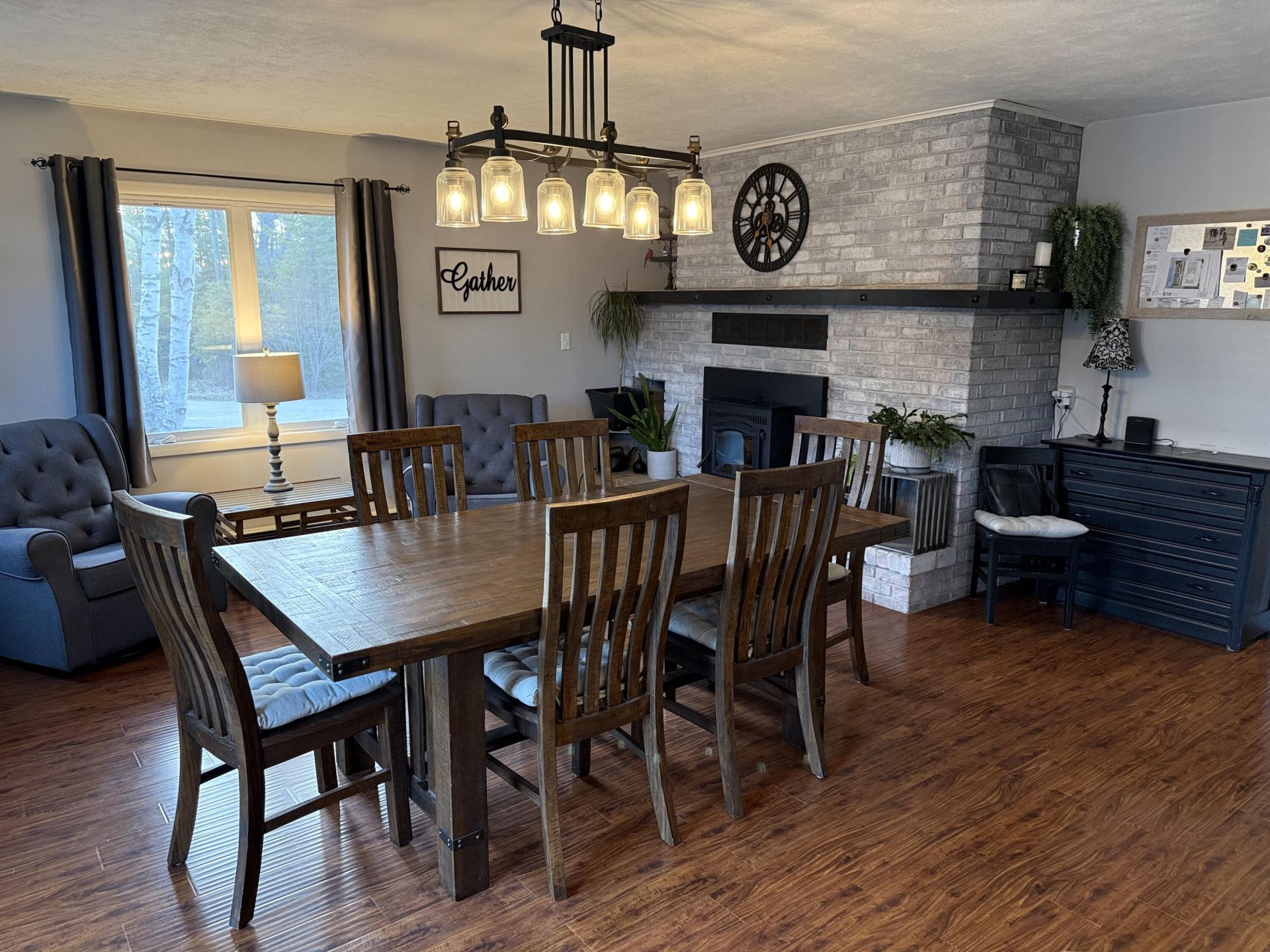 This home stands among the finest in today's market in its design, layout and finish. It features 4-bedrooms, 3-full baths in a completely updated bi-level home in Cedarville, Michigan, on a private double lot. The main floor has a large elegant dining room in an open floor plan including a brick fireplace with pellet insert. The primary bedroom with ensuite has a double sink, sliding glass shower doors and is its own haven. The spacious living room is newly carpeted with an adjacent powder room, and laundry room/home office combo suitable for a bedroom. The finished lower level expands the living experience with a generous recreation room, wet bar and entertainment area, and three additional bedrooms, one used as an exercise room, and a full bath. Large boulders surround the fire pit and